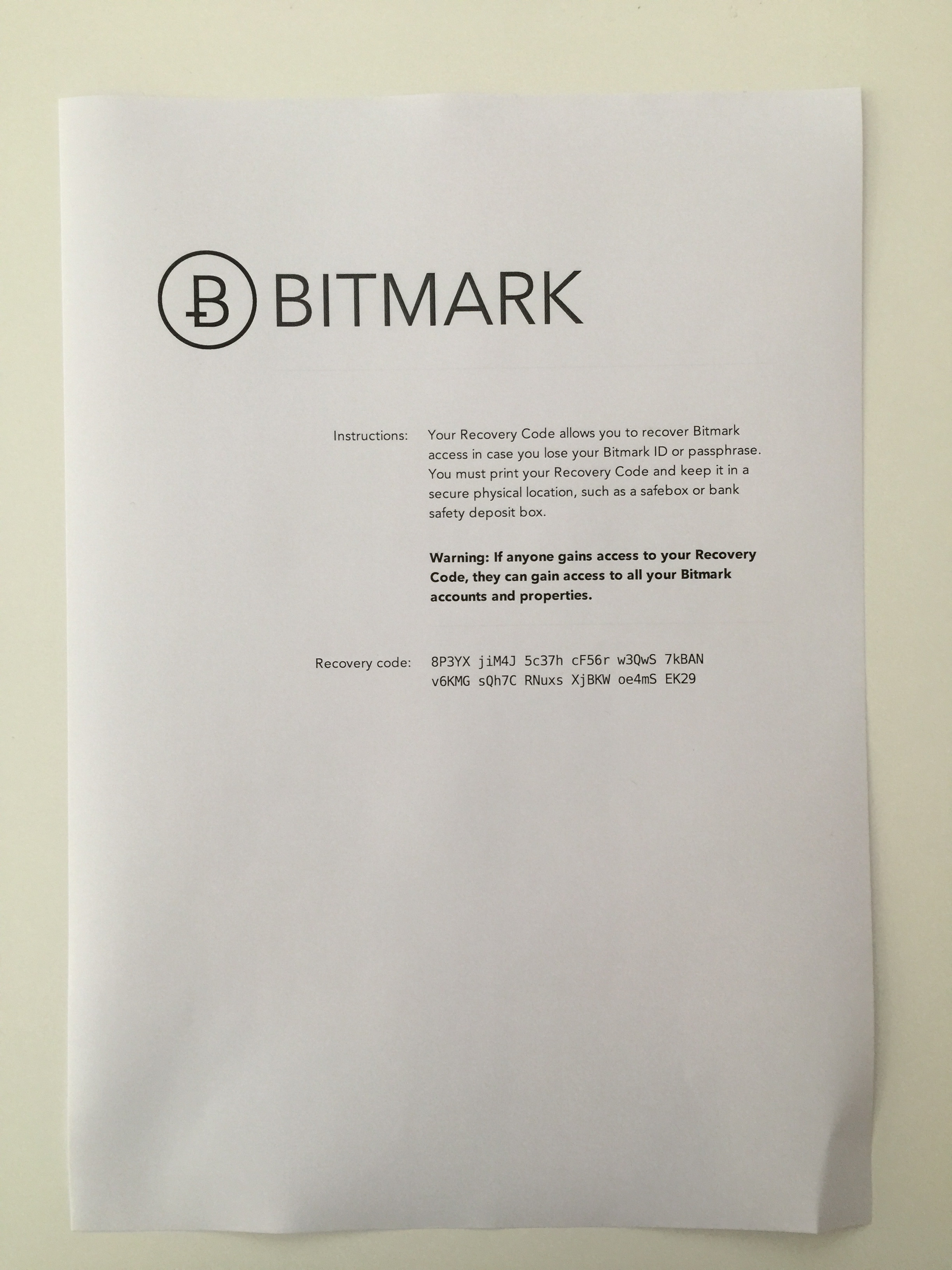 Original design of a recovery code. -